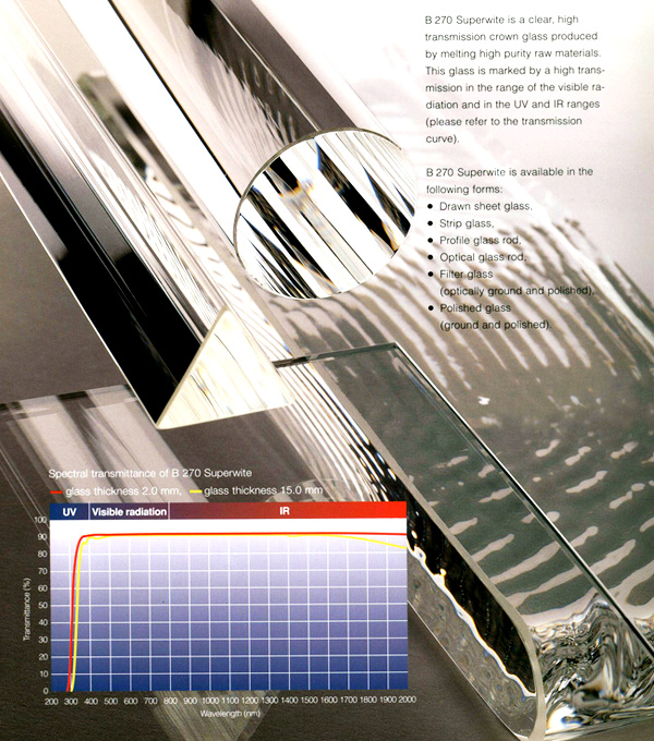 The company supplies Germany SCHOTT company with many optical glass materials possessing high optical stability and chemical characters, such as B270 and D263 optical glass. The width includes B270 0.9mm-10.0mm and D263 0.3mm-0.55mm.